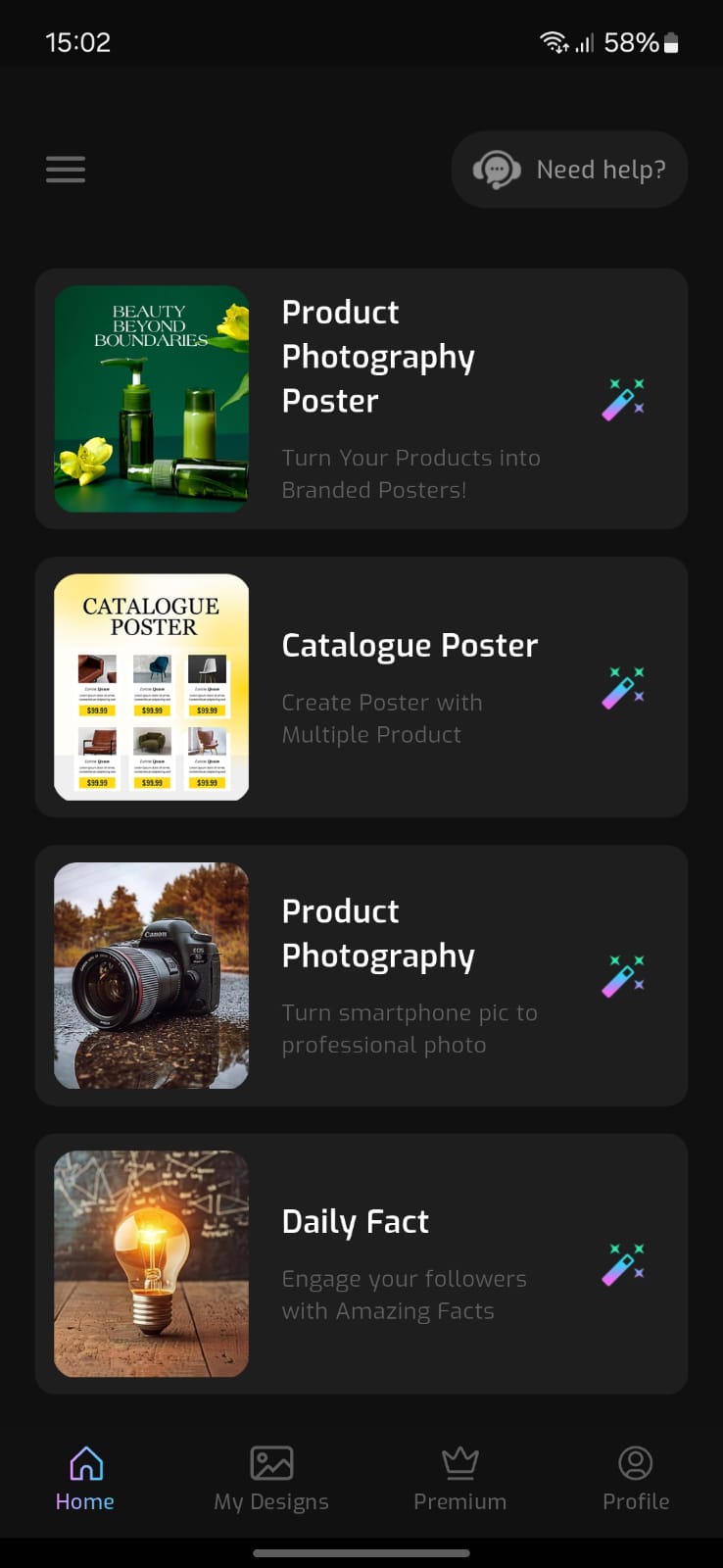 WizadAI is an AI powered poster generating app which focuses on production of Product Photography and Poster generation.