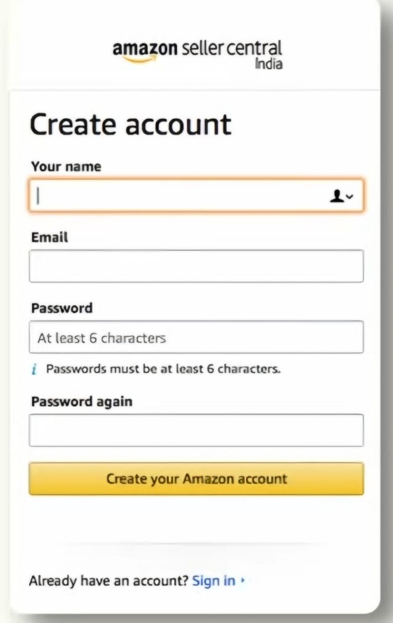 Visit sellercentral.amazon.in and sign up with your GST number, PAN card, and bank details.